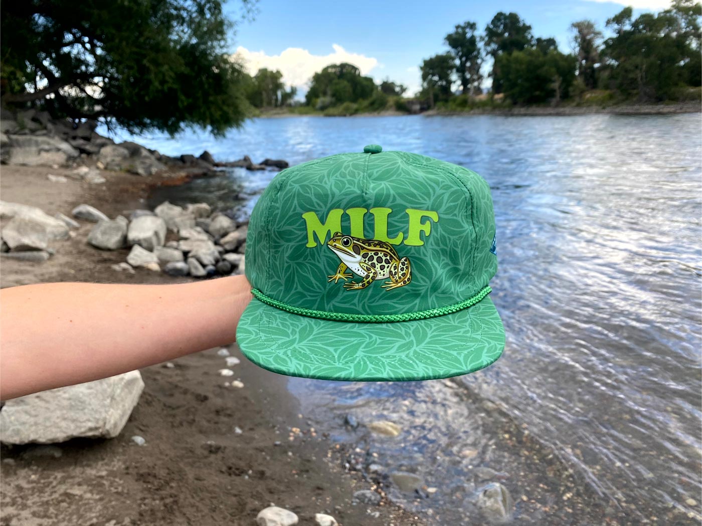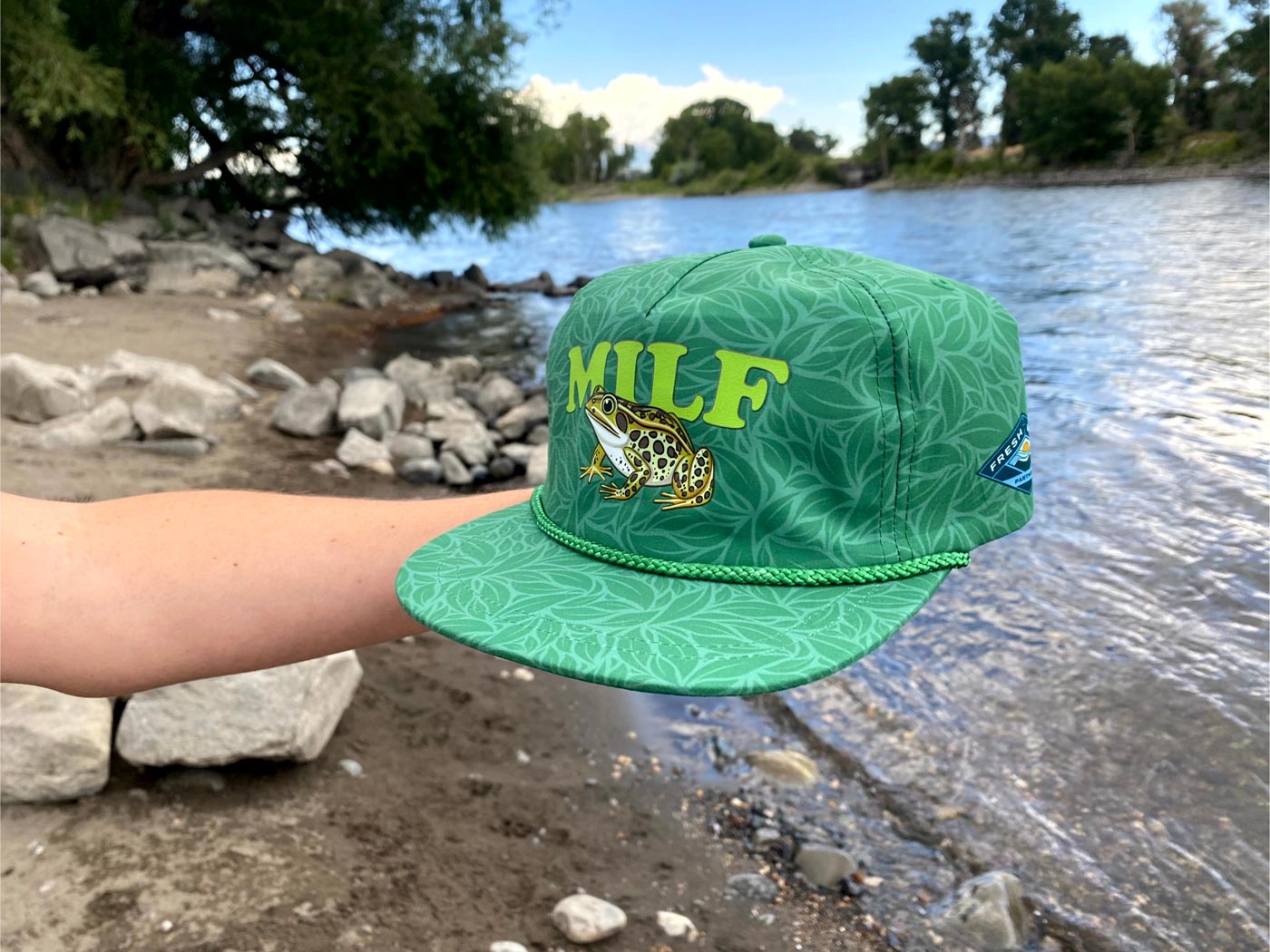 Man I Love Frogs (MILF)! Floral style hat with a cord at the seam.