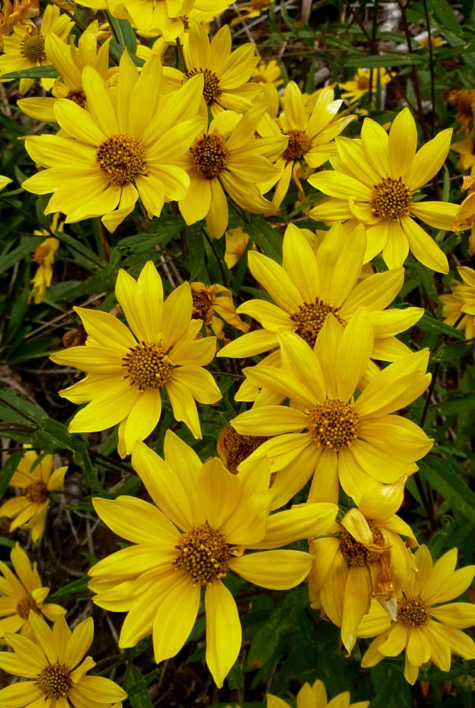 The Showy Goldeneye (Heliomeris multiflora) is a cheerful, hardy, native North American perennial wildflower in the sunflower family. It is known for its abundant bright yellow, daisy-like flowers that bloom from mid-summer into fall, that attract pollinators like bees and butterflies. It thrives in sunny, well-drained soils across western U.S. landscapes. This drought-tolerant plant is popular in native gardens, restoration projects, and prairie plantings for its low maintenance and ability to add color to dry areas.