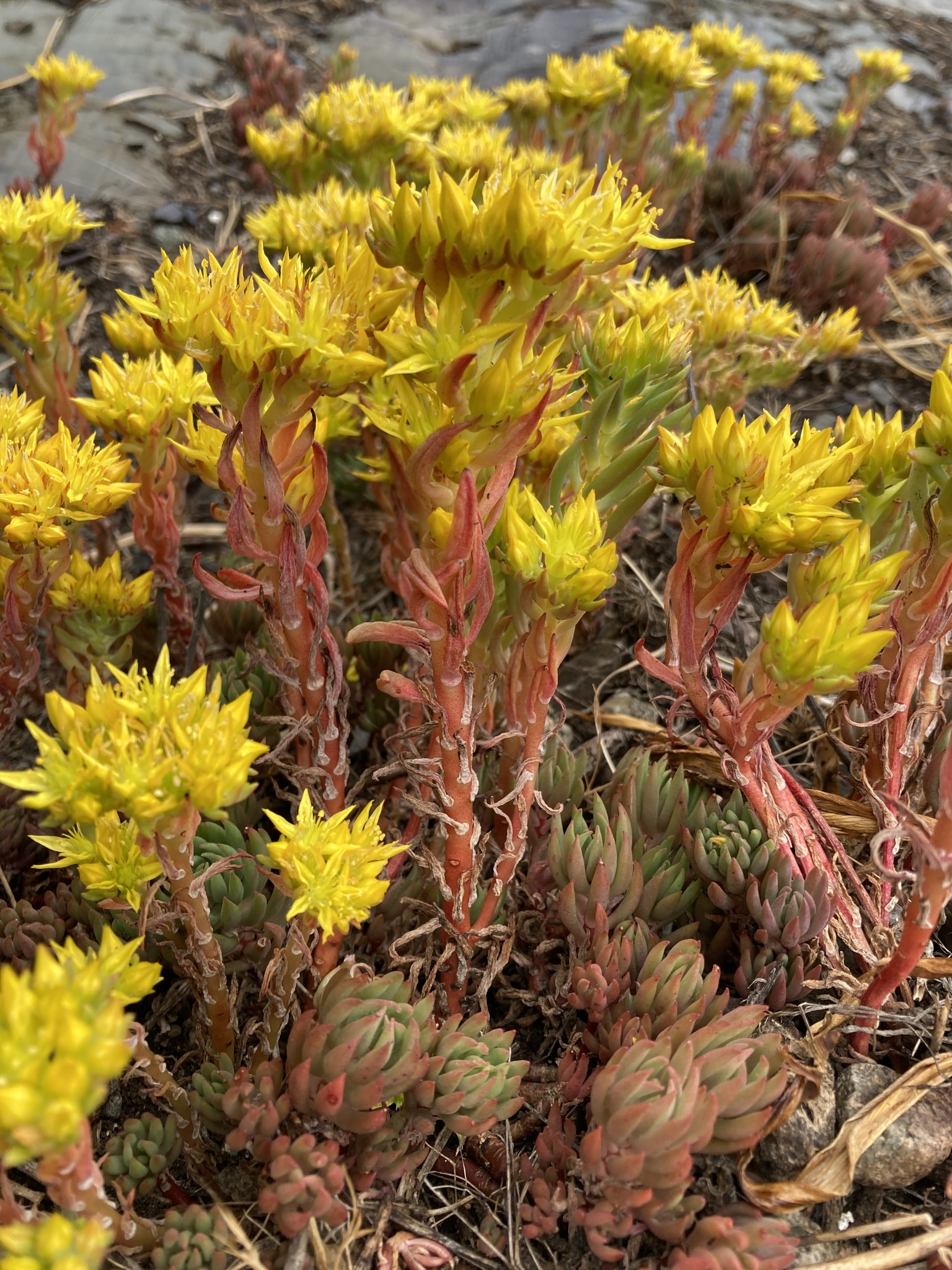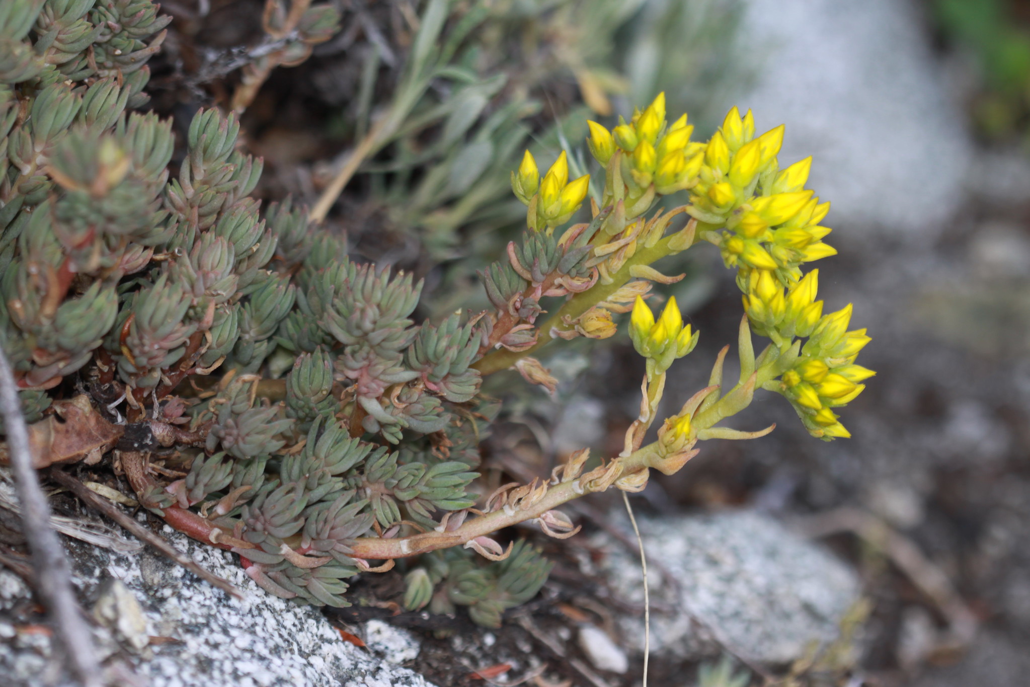 Spearleaf stonecrop (Sedum lanceolatum) is a hardy, low-growing succulent perennial native to western North America, known for its fleshy, lance-shaped leaves and bright yellow flowers in spring and summer. It thrives in sunny, rocky, well-drained spots and requires minimal water, making it excellent for rock gardens.